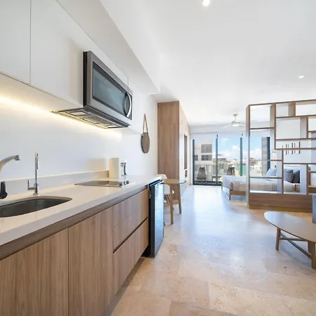 Luxury Studio Equipped With Rooftop Pool & Gym - Piedra Azul 605 Playa del Carmen is located only 500 metres from the Kool Beach Club and offers Wi-Fi for either business or leisure. The nearest bus stop Colectivo pick up is 950 metres away, while the Portal Maya Park is merely 1.5 km away.